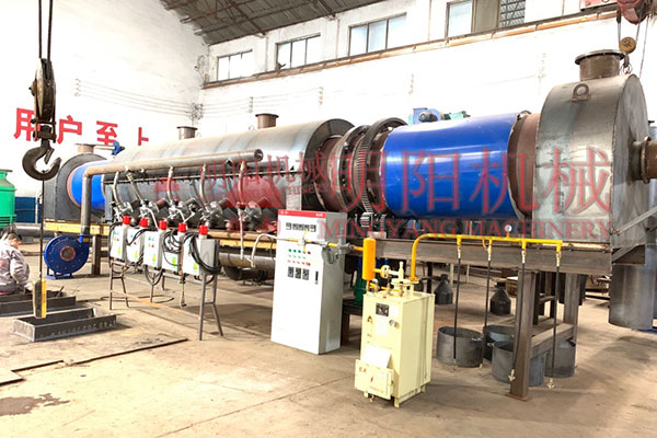 4、炭化大概2-3小時(時間溫度不同)后炭粉從炭化徐徐流入炭化炭粉冷卻器并從冷卻器流出,設備生產正常可連續不間斷下料。